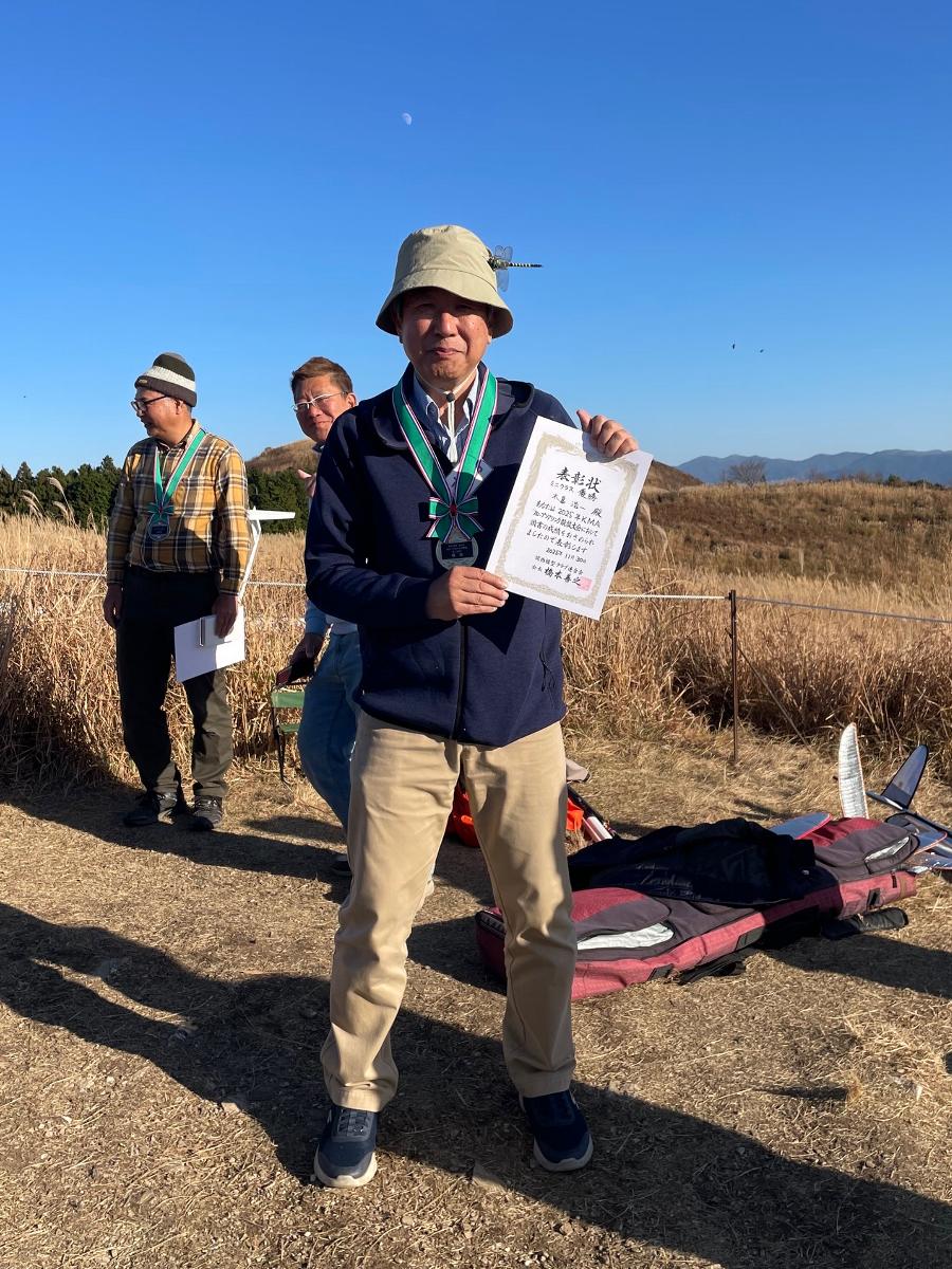競技はオープン級(機体は自由)から開始、この日の条件では、大型軽量で浮きのいいシャーレ機が有利なよう。私はHyper-Sで参戦しましたが、全く浮かずにスタートできず・・・オープン級は、スタッフの森尾さんが優勝しました。